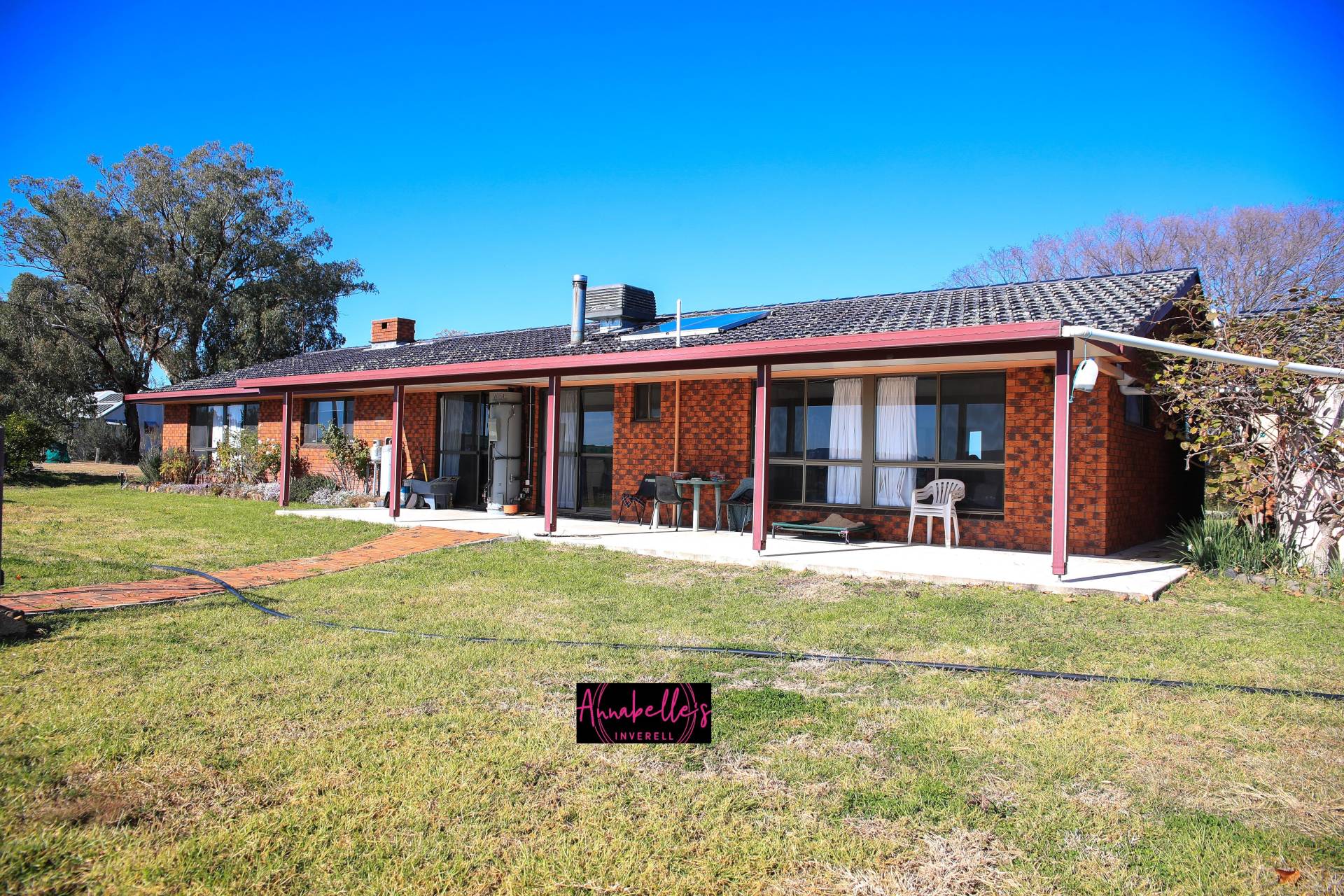 'Byron Park' is situated in an elevated sought after location on picturesque acreage just minutes from town. Spacious 3 bedroom brick home + office features ducted evaporative cooling throughout. Large timber kitchen with quality appliances, slow combustion cooker, 2 electric stoves & gas cook-top, pantry & endless cupboard space. Formal dining room flows through to generous lounge room with wood fire. Grand master bedroom boasts views overlooking the gardens, ensuite and BIR. 2nd wood fire in the hallway warms all the bedrooms, main bathroom with shower, bath and separate toilet. Sit on the verandah overlooking the views and watch the kids in the salt water pool, 2nd toilet in the Laundry. Excellent rain water storage, bore & town water available, solar panels, double lock up garage with automatic doors. The property also has an abundance of shed space with 10m x 9m colorbond shed, brand new 12m x 12m industrial shed with front & rear access, skillion 3m x 12m. Peaceful 5 acres with established shade trees, veggie garden, fruit trees and separate paddock for a Pony or pet Alpaca. Byron Park is a must to inspect. The property is also currently rented and offers plenty of space and peace and quiet.