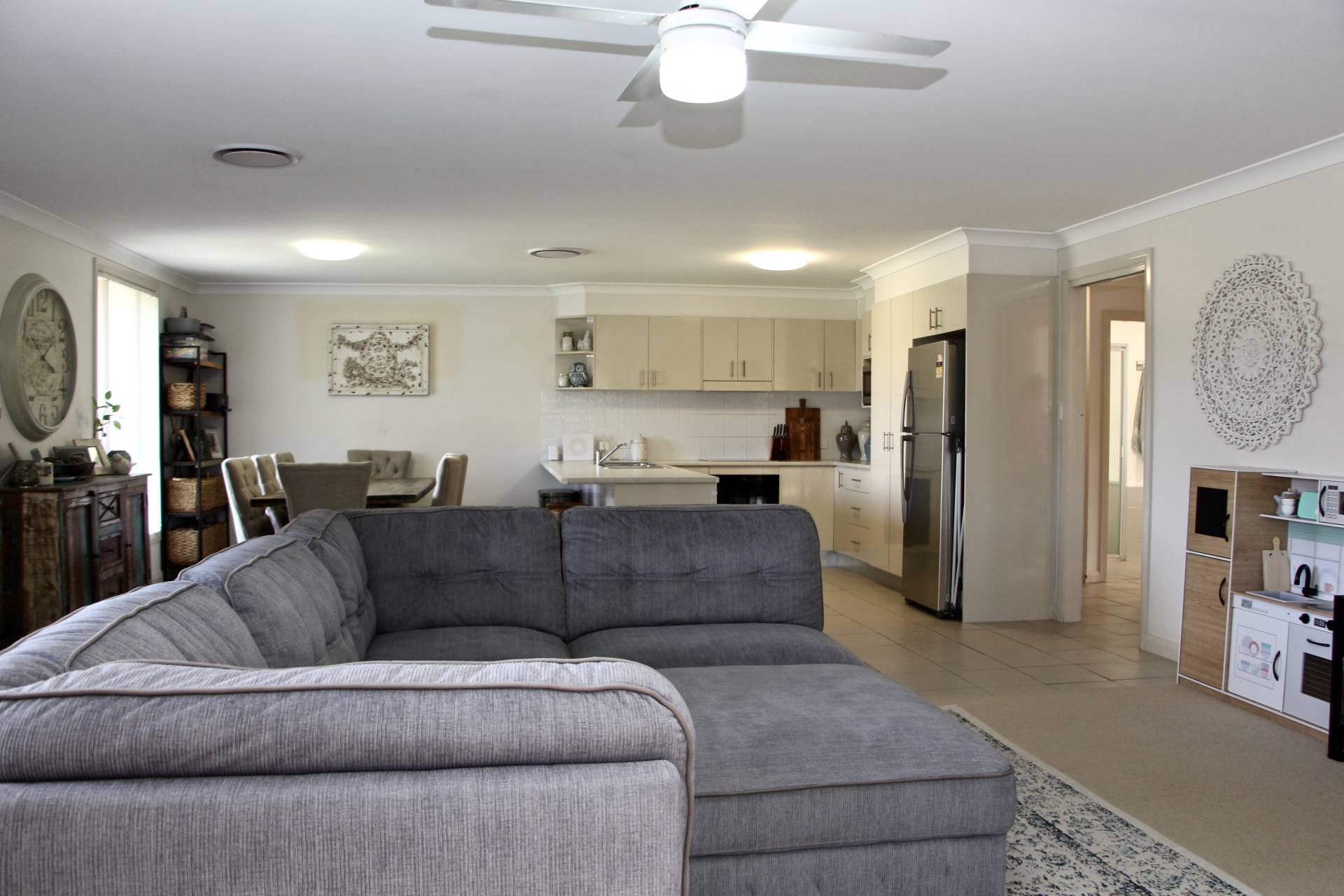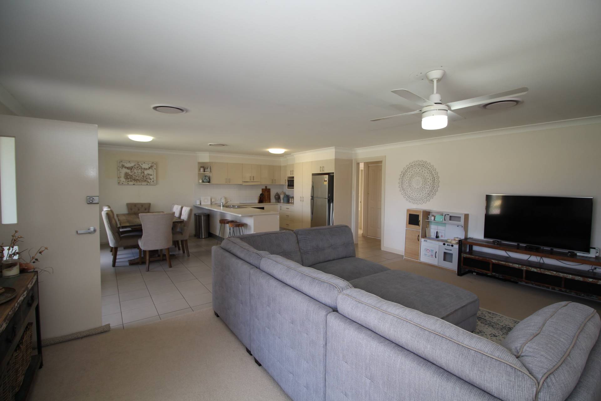 Step inside to discover a welcoming ambiance, and modern living which is unified throughout the home. The property has an array of features including open plan living and lounge area, kitchen equipped with modern appliances, as well as glassed sunroom/ gym area off the side of the living area. The property also contains a master bedroom with ensuite, main bathroom, and 2 spacious bedrooms with built in robes as well as ducted zoned air conditioning to ensure your kept comfortable all year round.  Ceiling fans thru-out & spacious laundry.  Single carport with air conditioner ideal space for home business.  Fully fenced pet friendly yard or childrens playground and fresh rainwater tank.