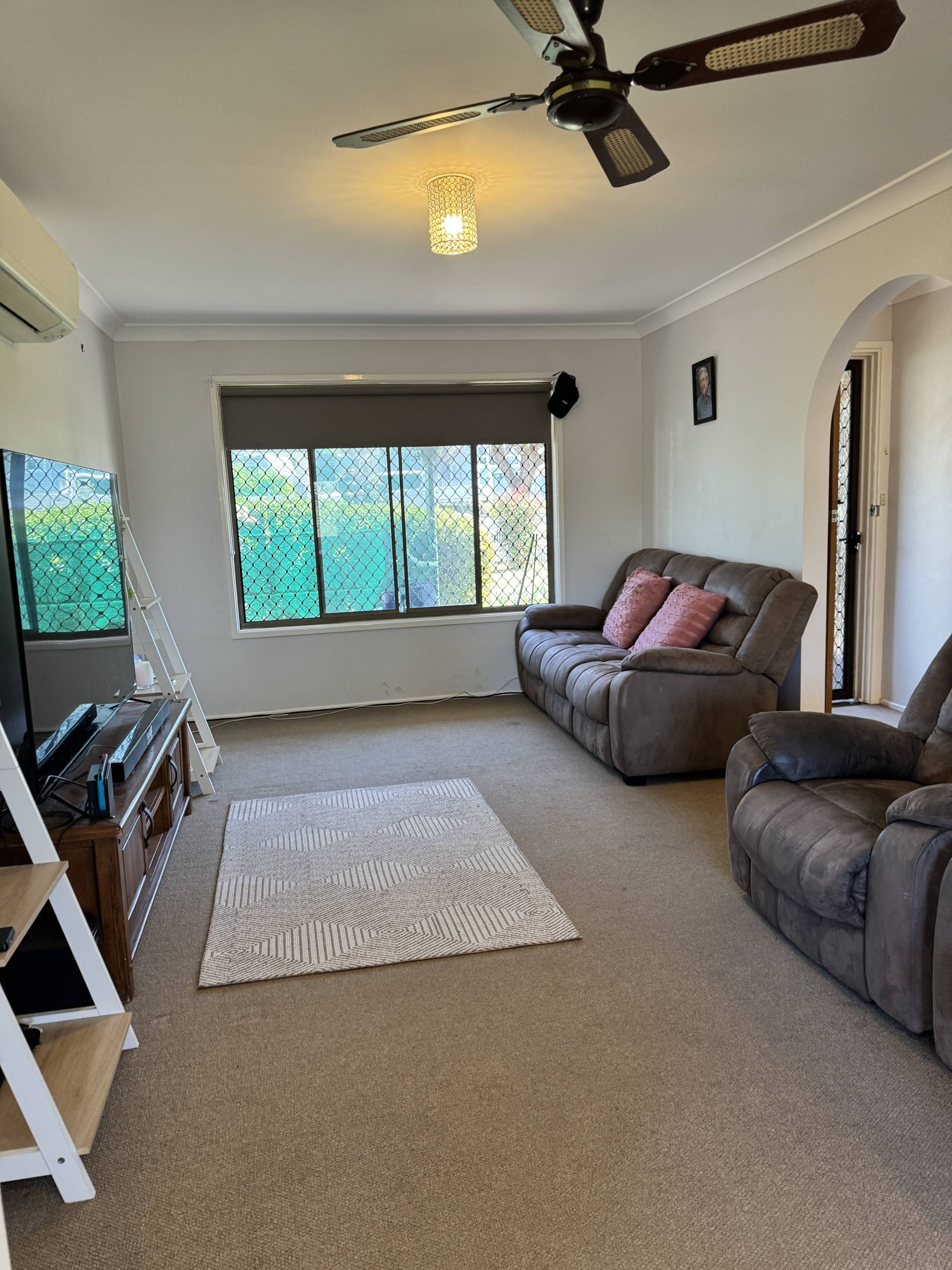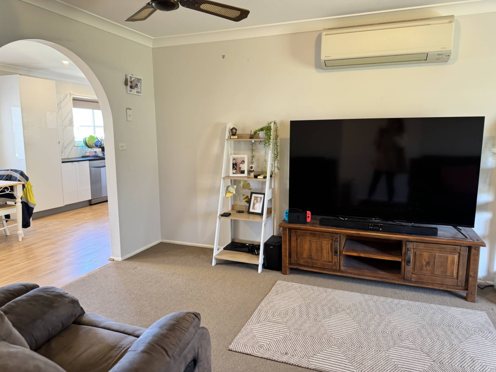 • Separate loungeroom with ceiling fans, gas heating & reverse cycle air conditioning.