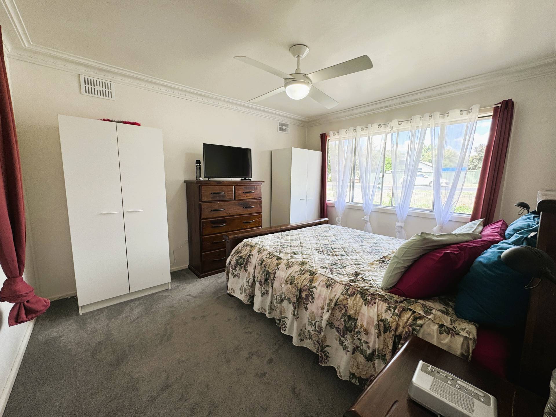Master bedroom has cupboards with ceiling fan and second and third bedroom have built in robes.