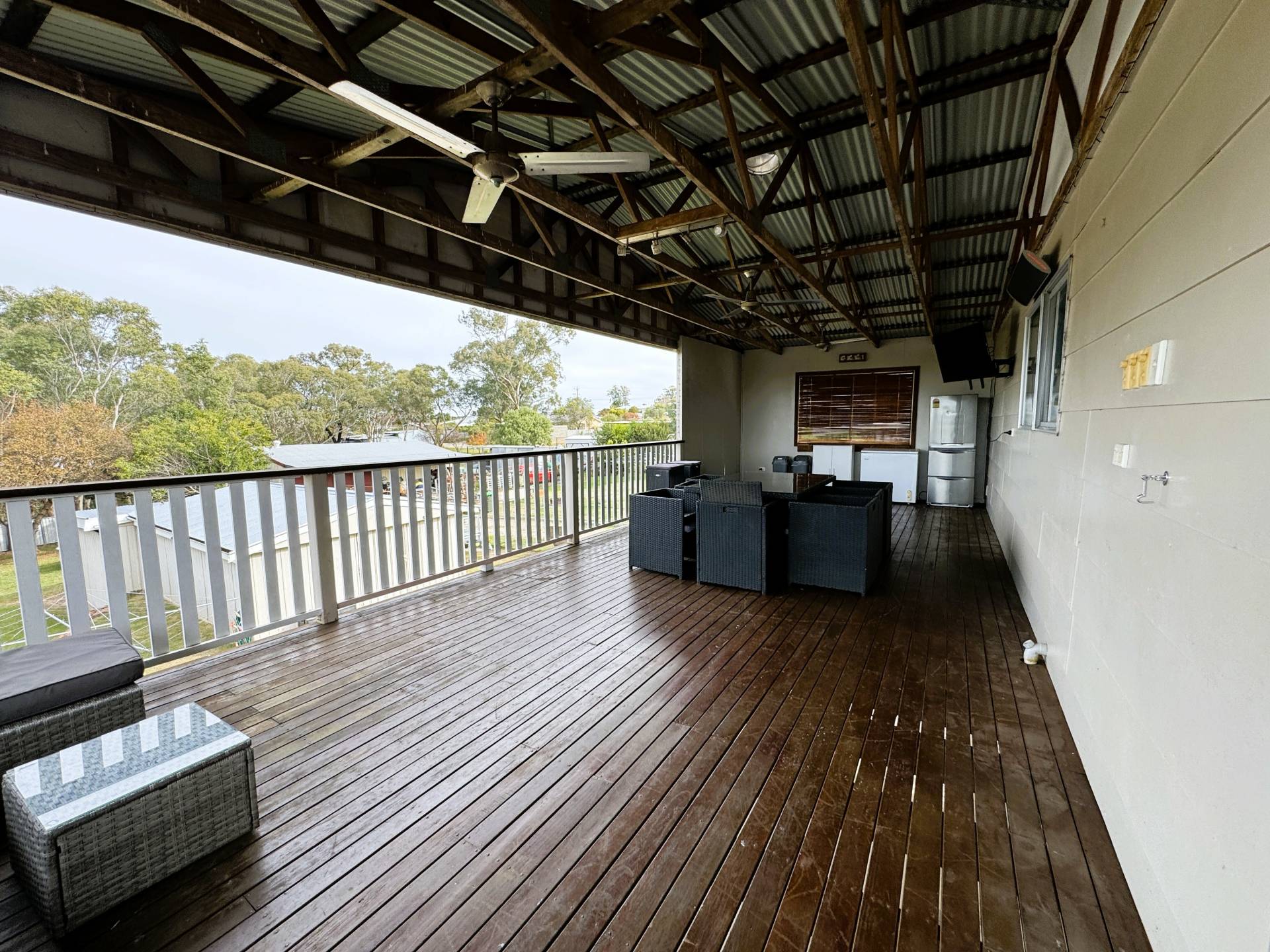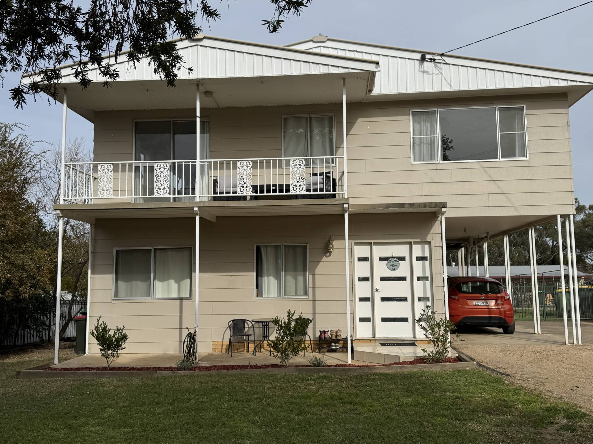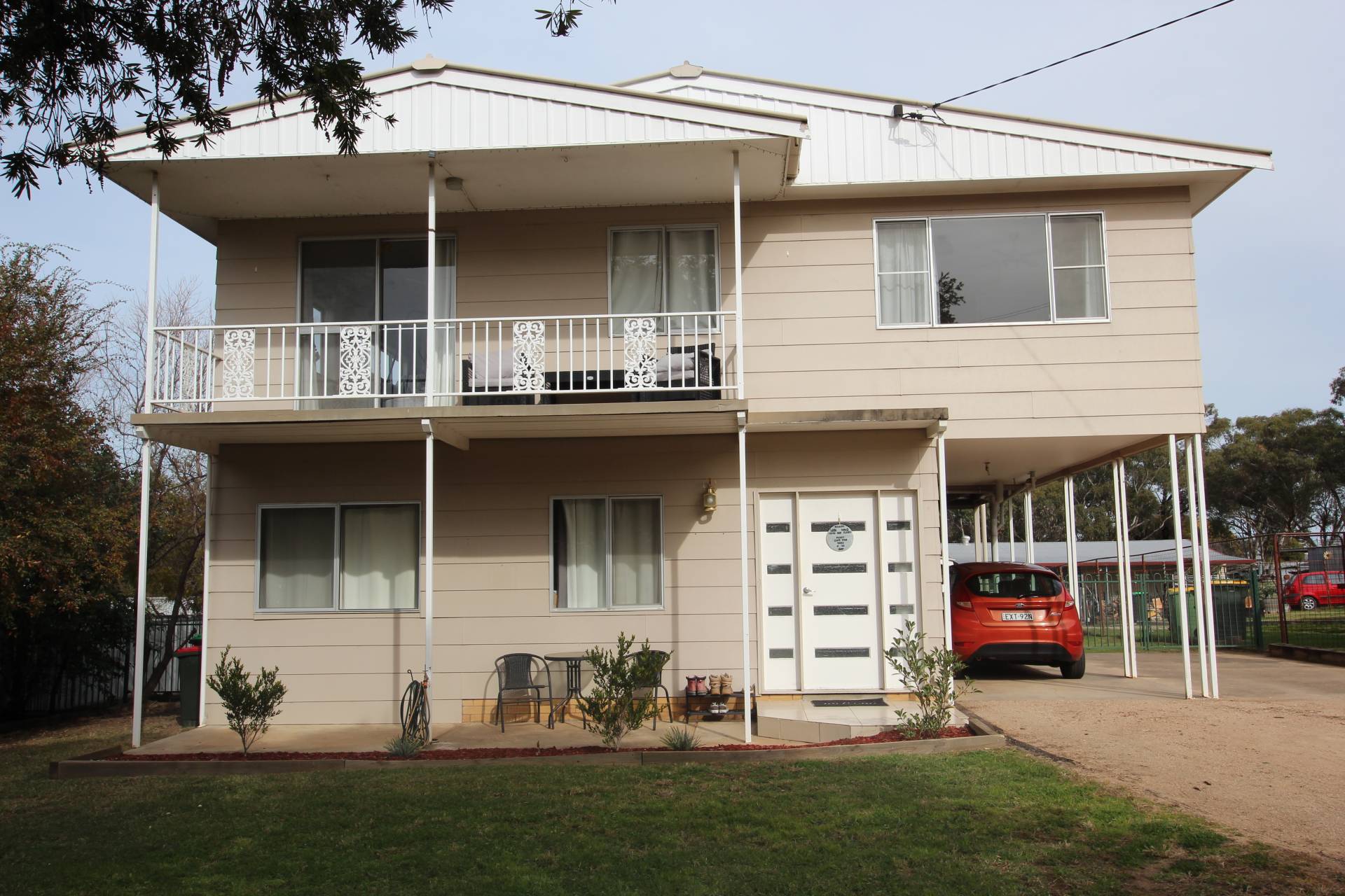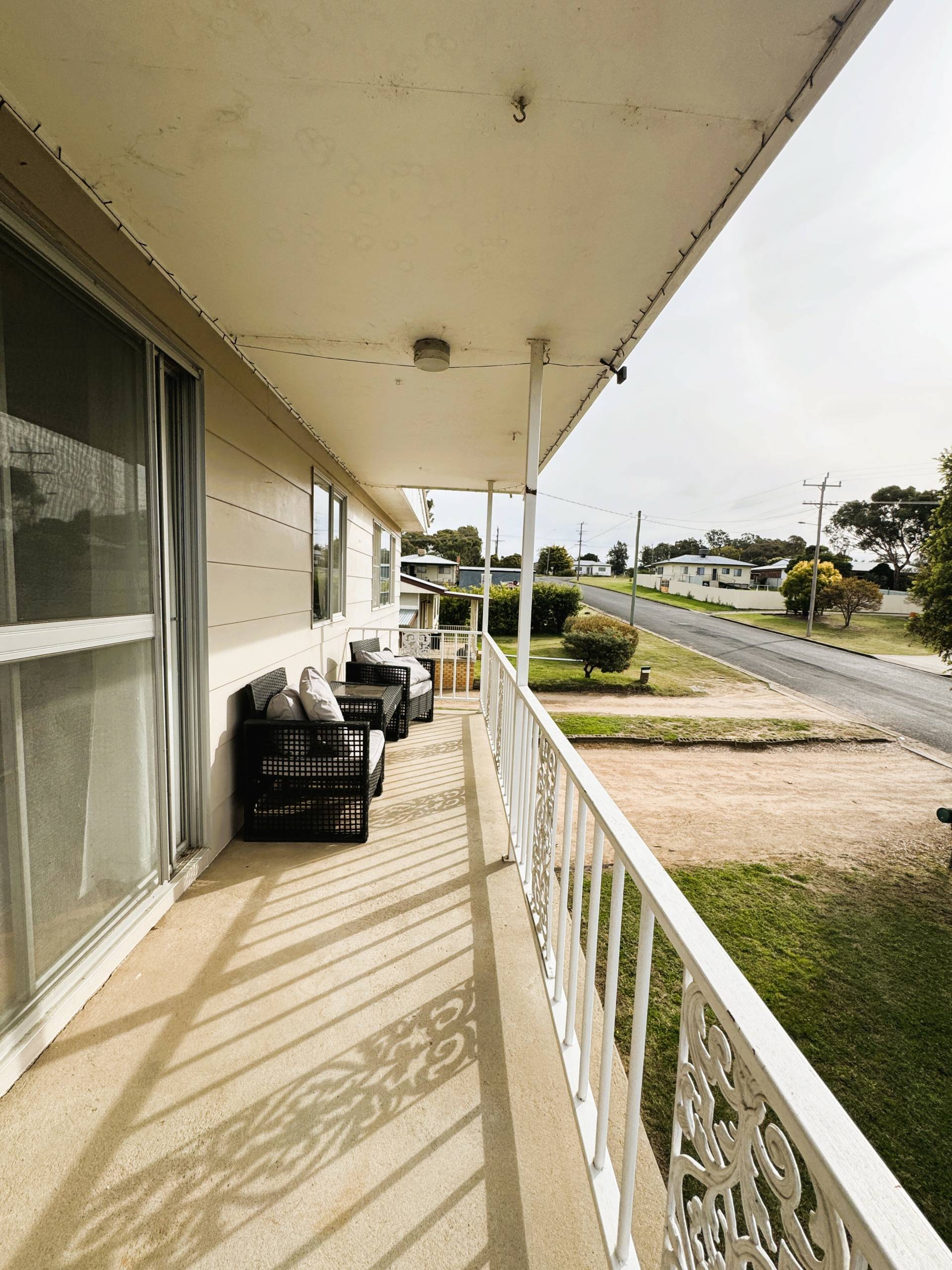 • Private upstairs balcony – perfect for outdoor dining or morning coffee overlooking yard