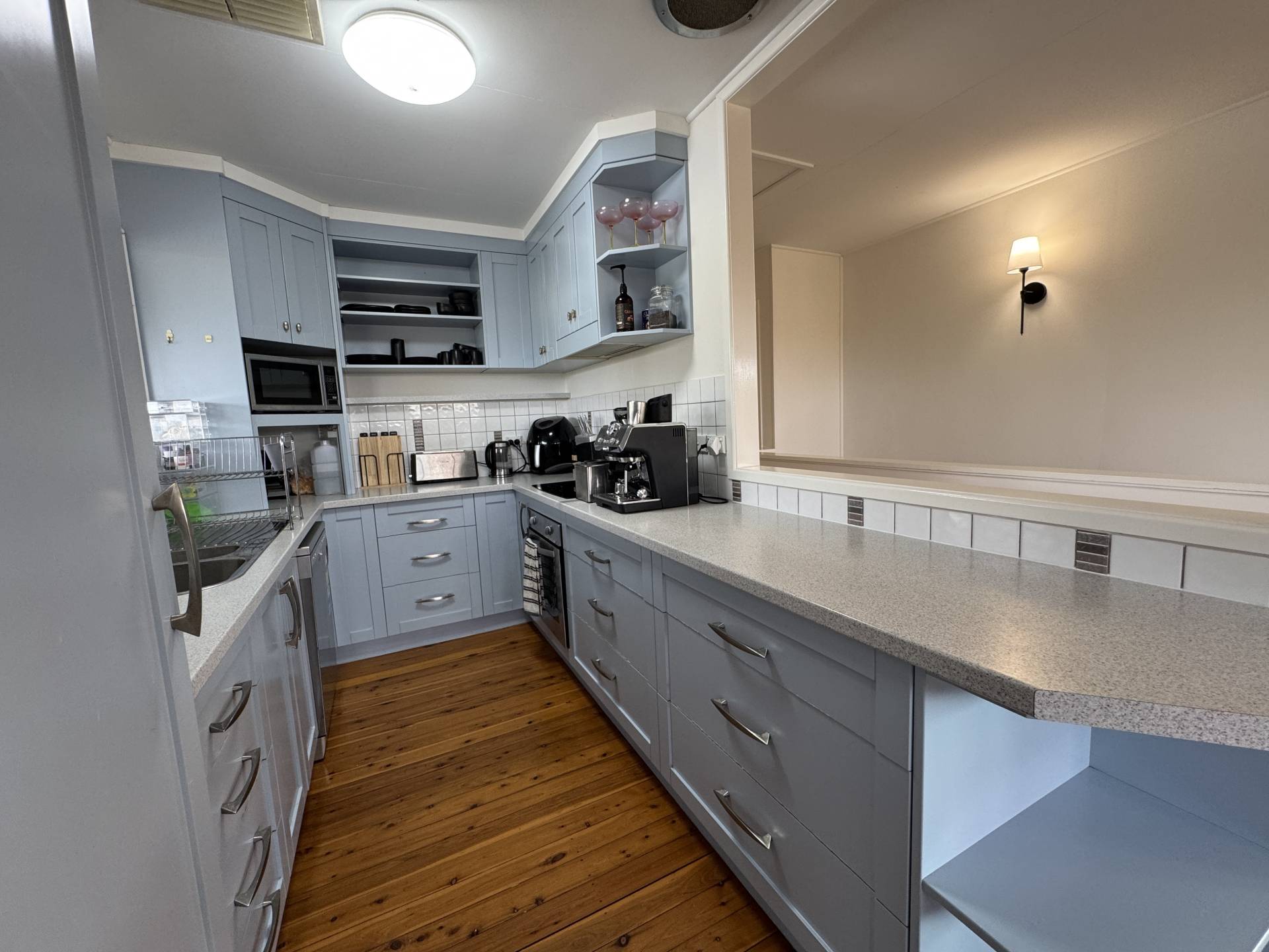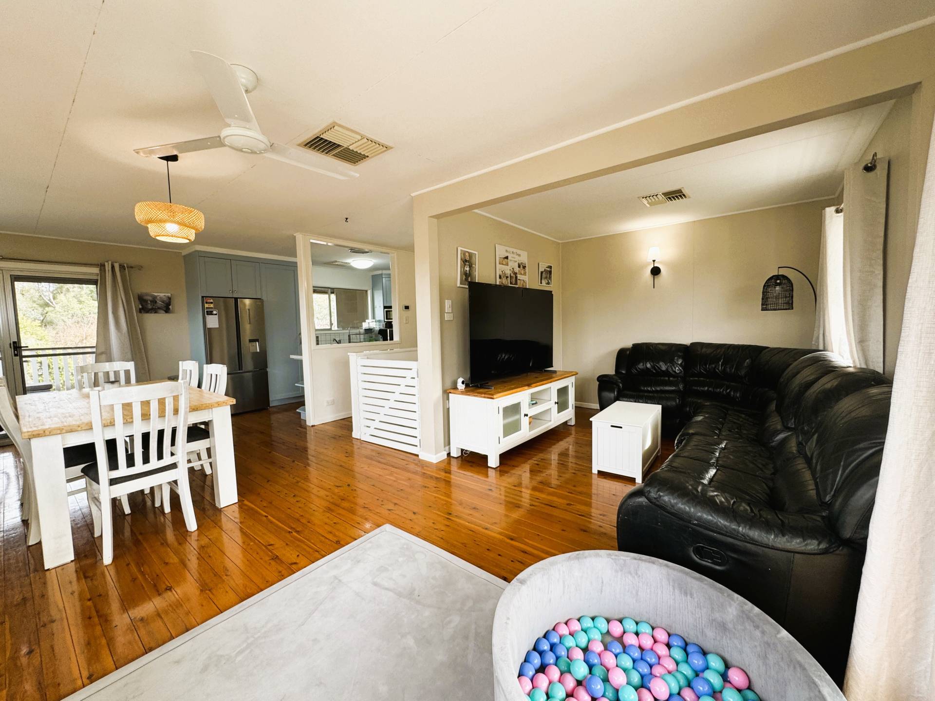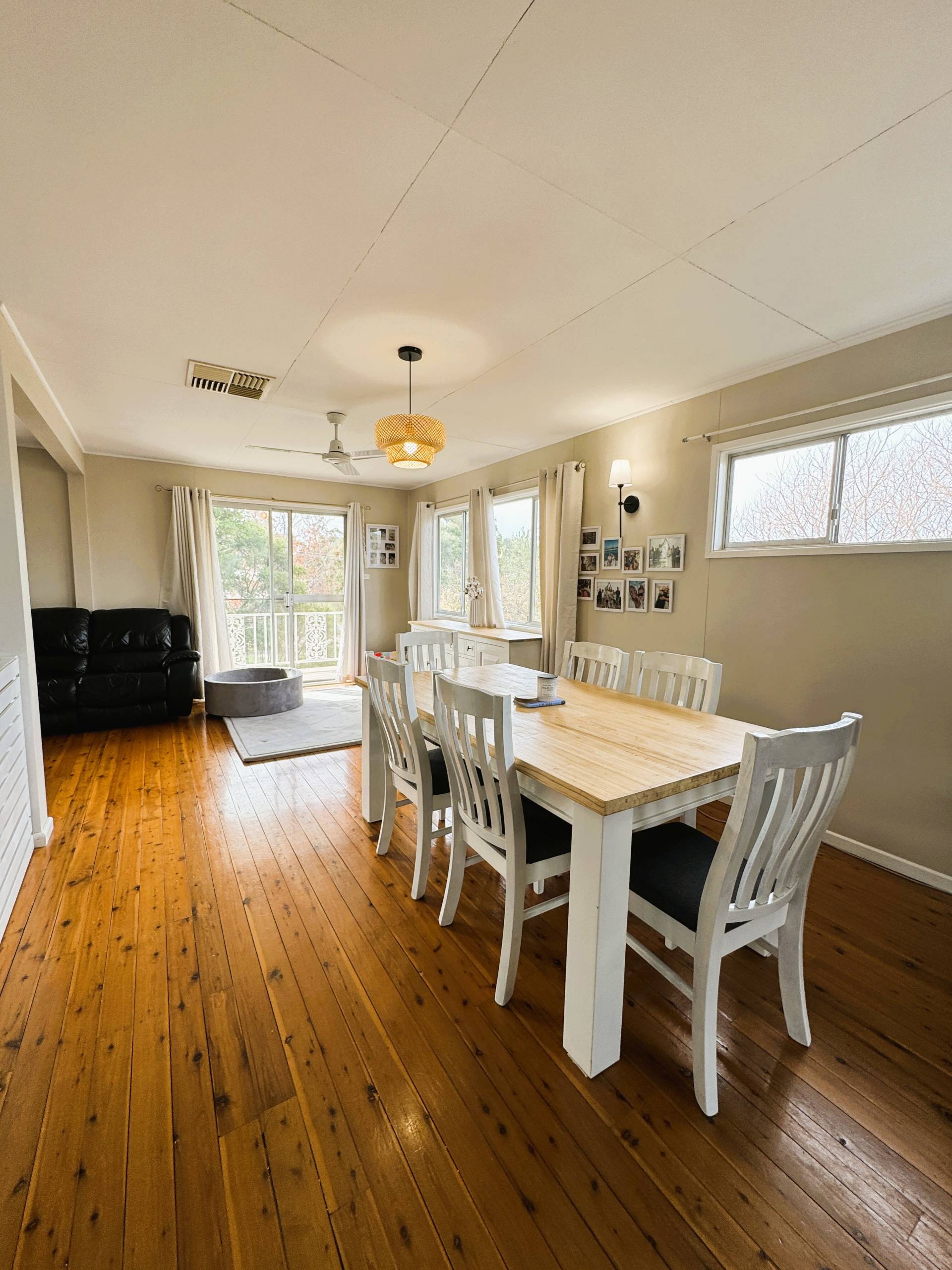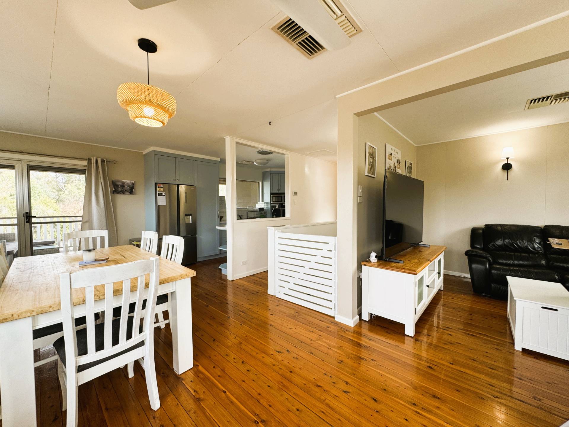 • Open-plan upstairs living with an abundance of natural light evaporative cooling and gas with polish timber floors