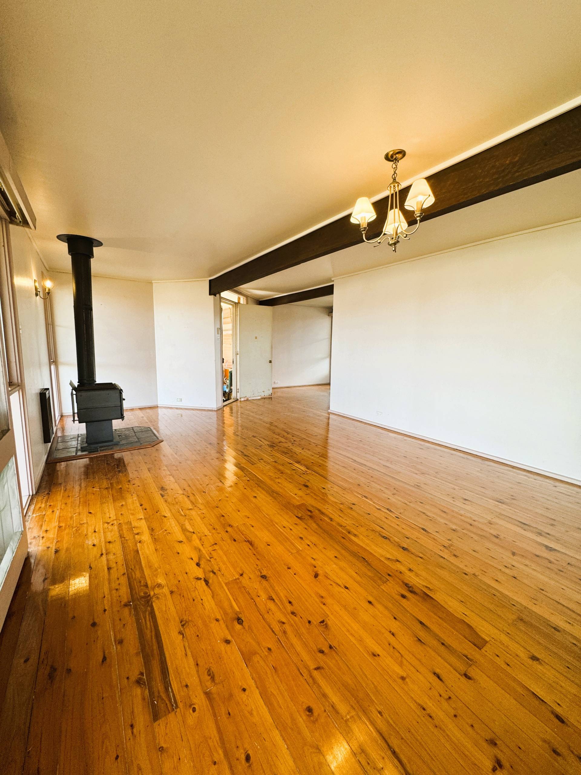 *   Two living/dining areas with air conditioner and cosy wood fire and timer beams and polished floors