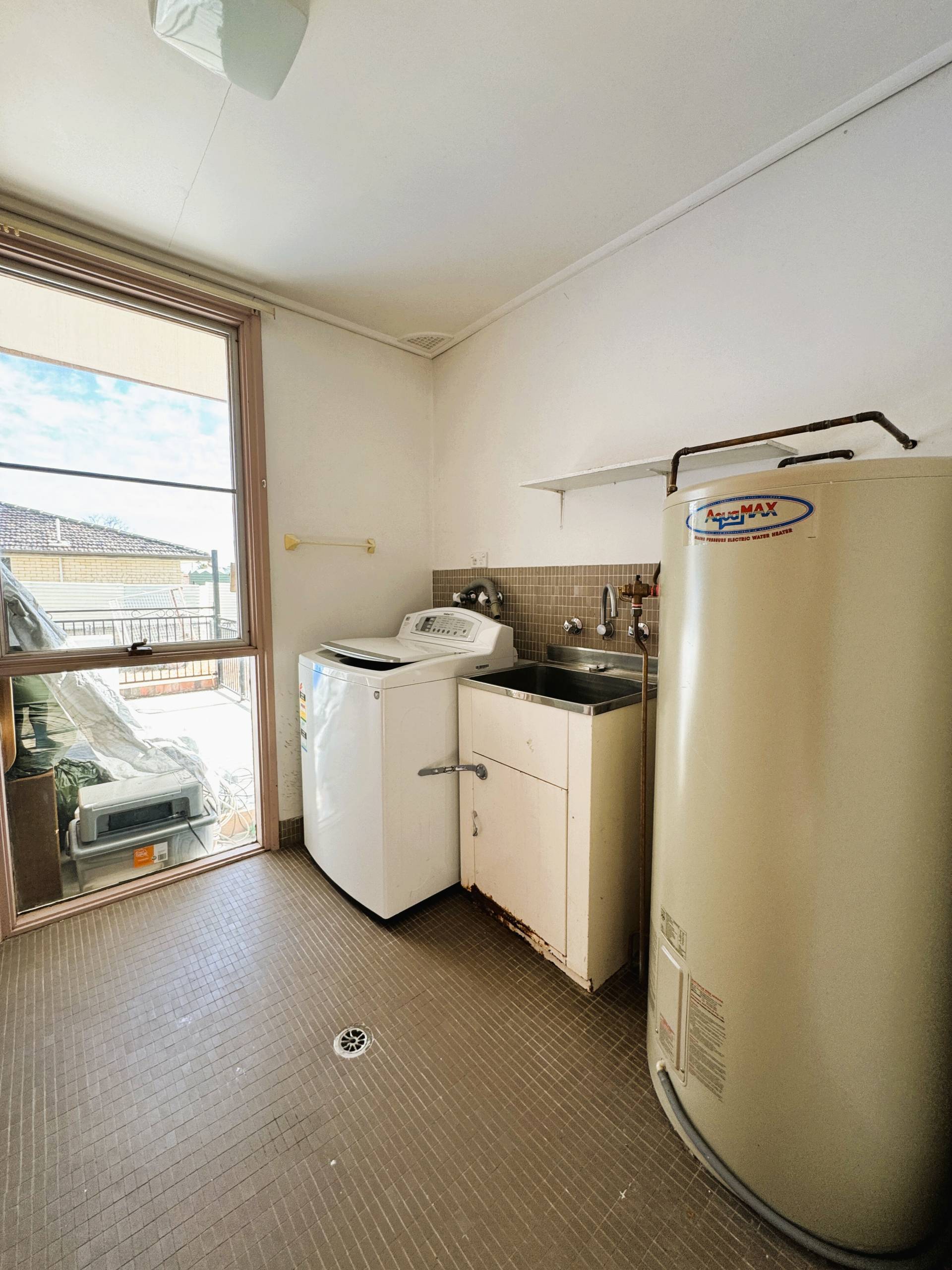 *    Good sized laundry with built in cupboards