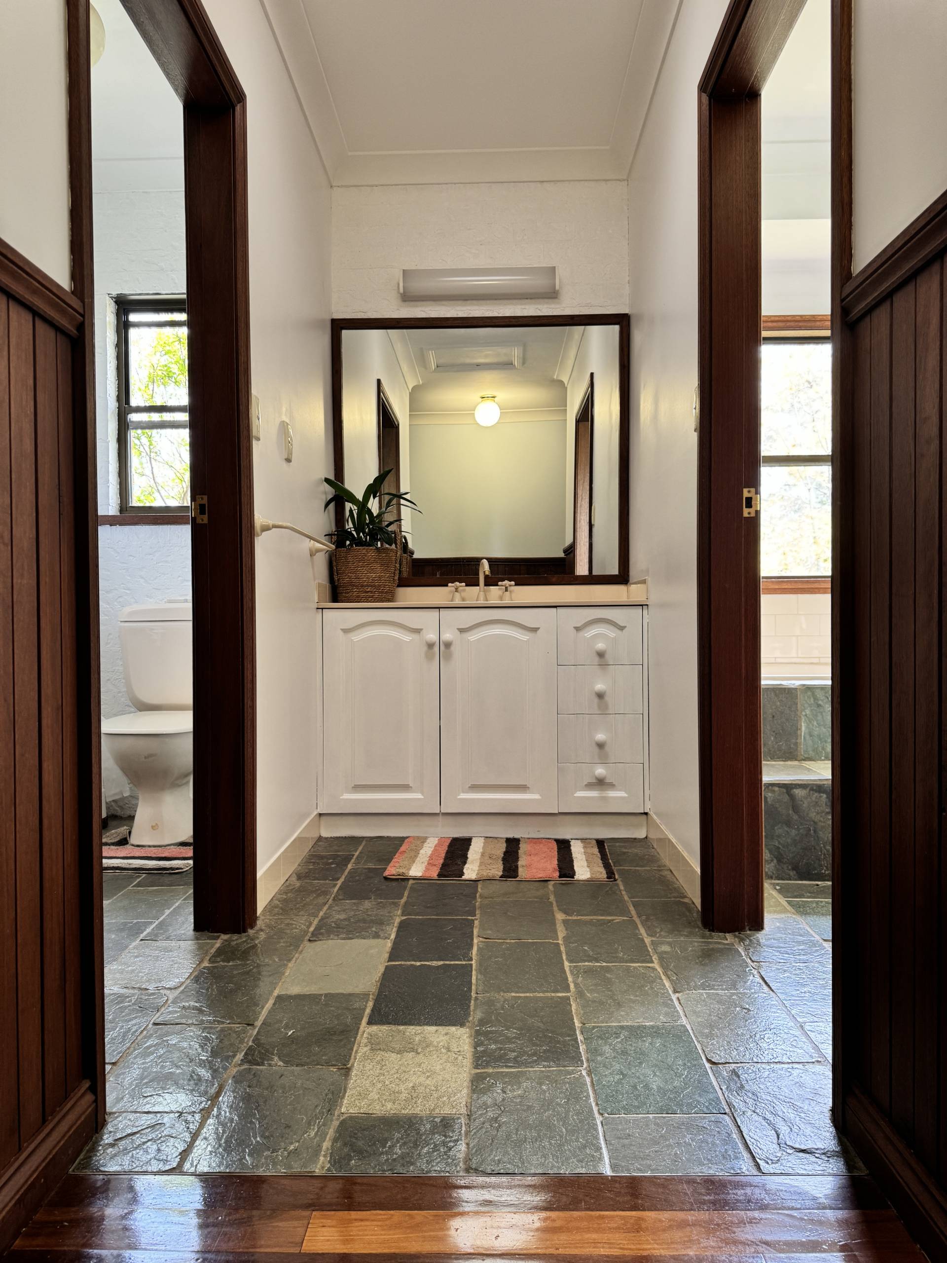 •  Three-way bathroom with sunken spa bath and rural views