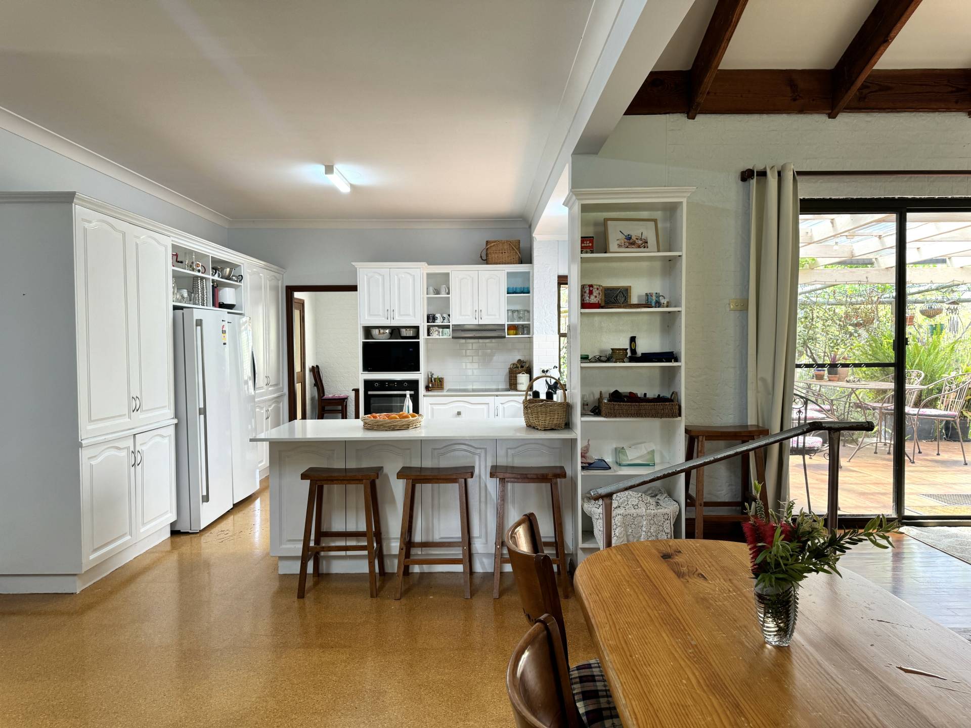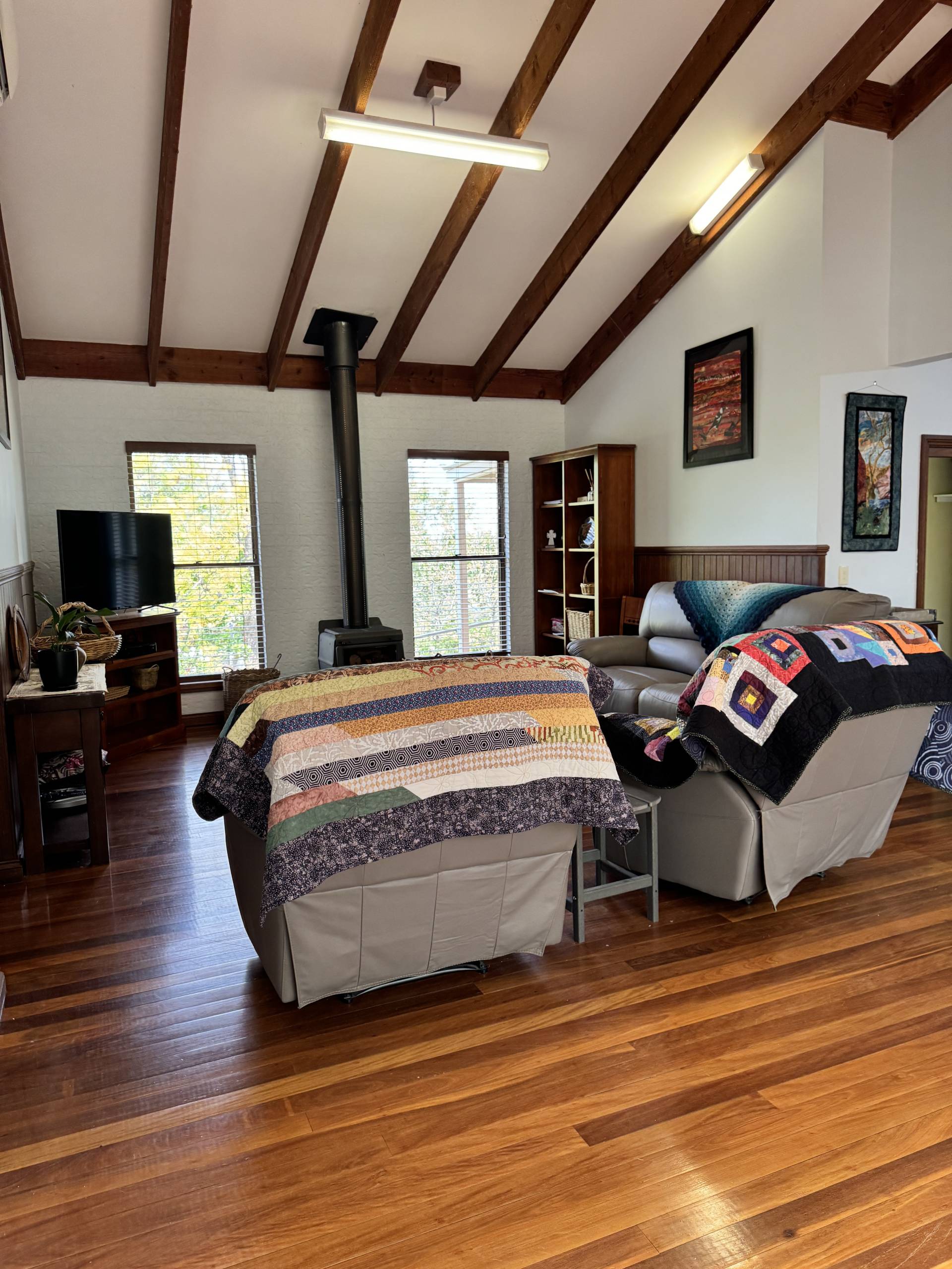 • Open-plan living area with raked timber cathedral ceilings