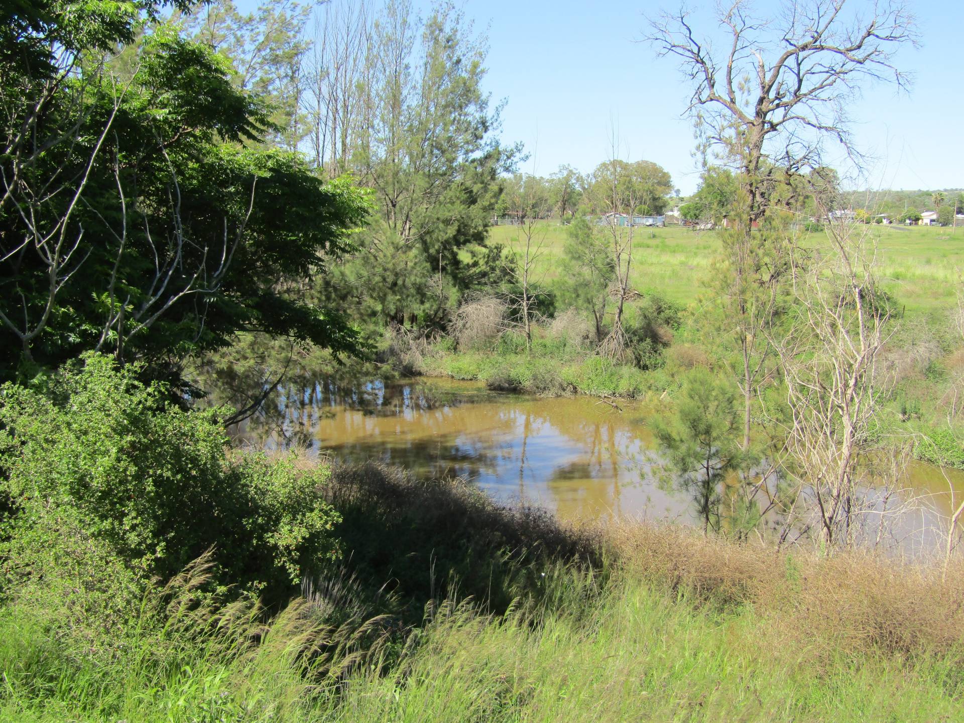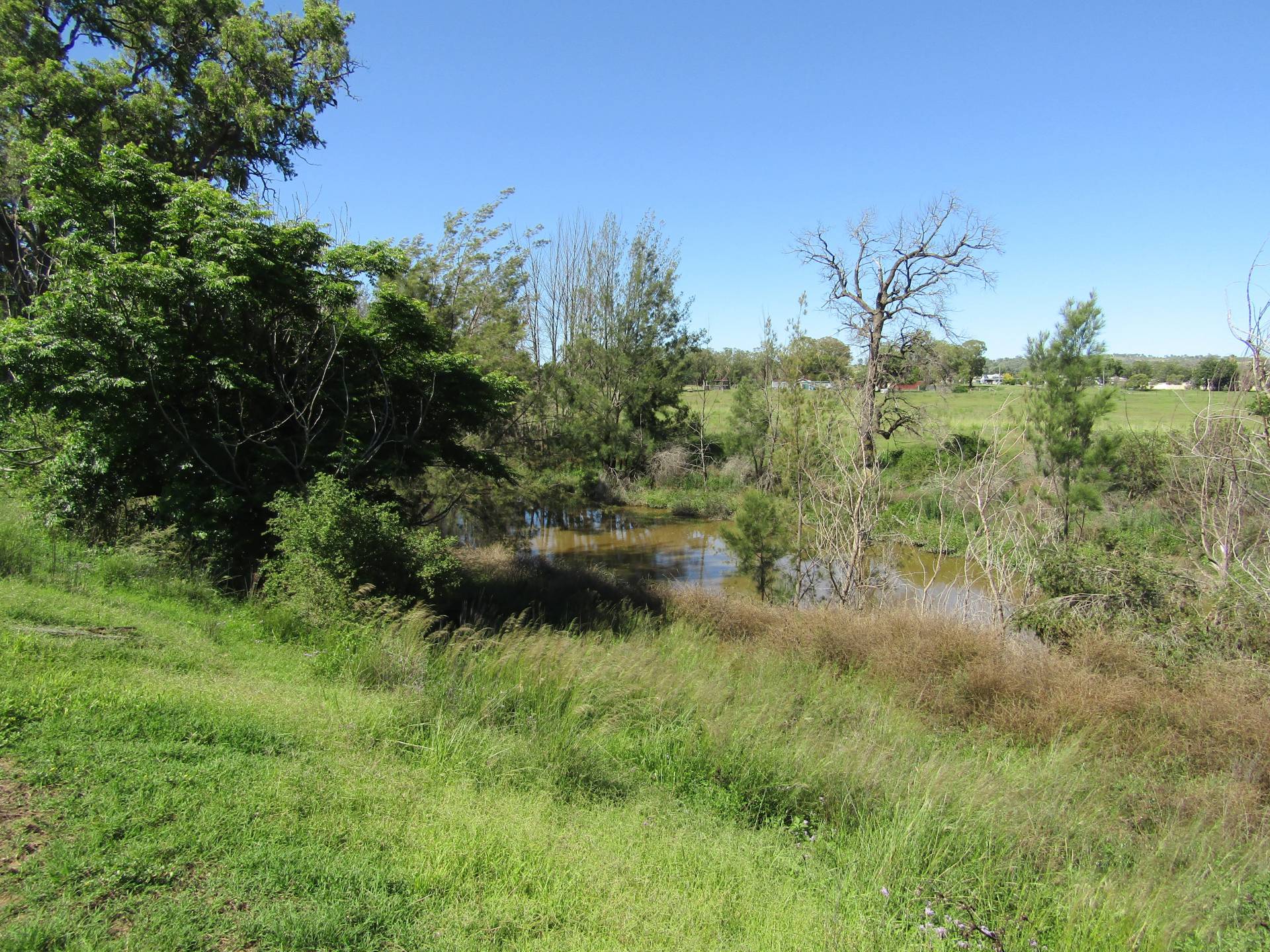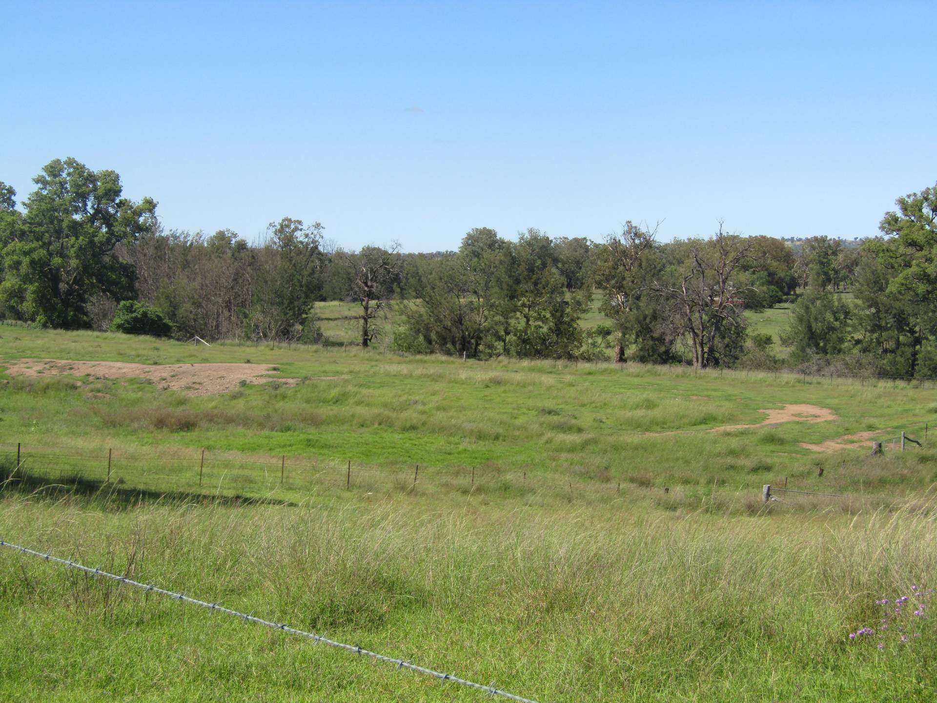 Loamy soils with natural grasses and beautiful Apple gums, 2 Dams, 5 barb fencing and split into 5 paddocks. Ideally located on the edge of town.